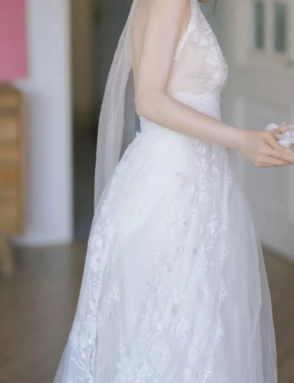 Le décolleté halter plonge avec audace, créant cette ligne en V qui allonge naturellement votre buste. Cette robe de mariée bohème dentelle joue subtilement entre révéler et suggérer - exactement ce qu'on adore toutes.