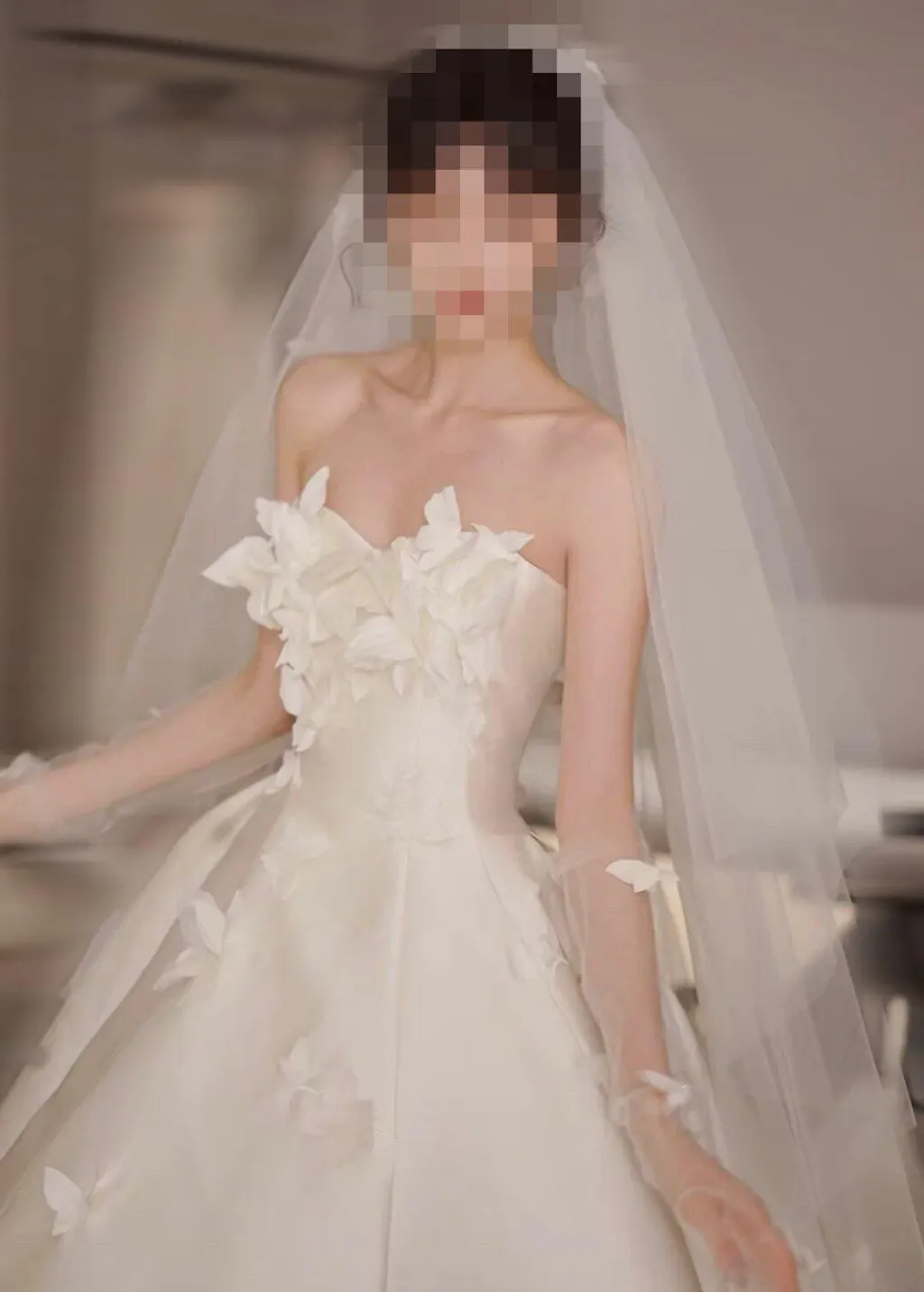 Look at this princess wedding dress! It instantly transforms every bride-to-be. Delicate butterflies seem to have chosen to alight on this sumptuous creation. Why? Because they recognize pure beauty when they see it.