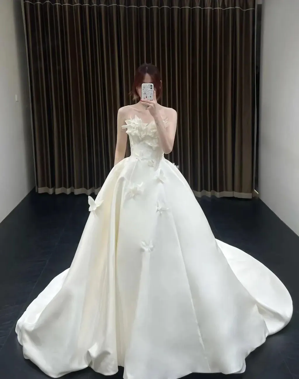 This is precisely the spirit of this voluminous princess wedding dress. It transcends mere clothing. It tells your personal story. Your metamorphosis. Your flight into this new married life. The butterflies? They symbolize exactly that: transformation.
