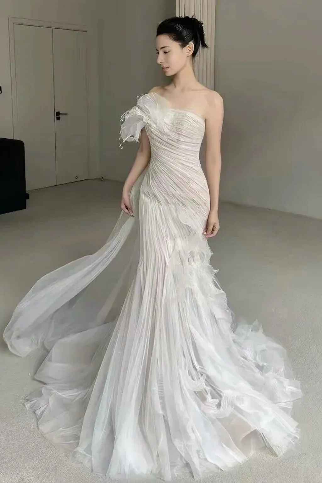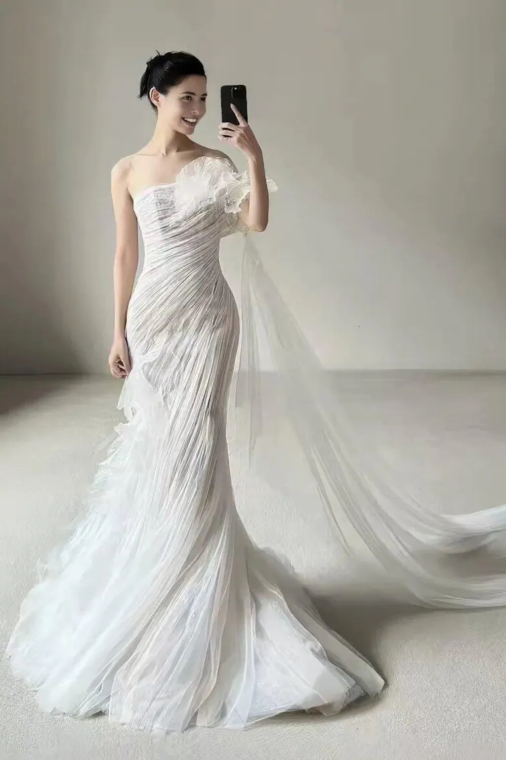 - Jupe fluide multicouches avec une belle traîne aérienne